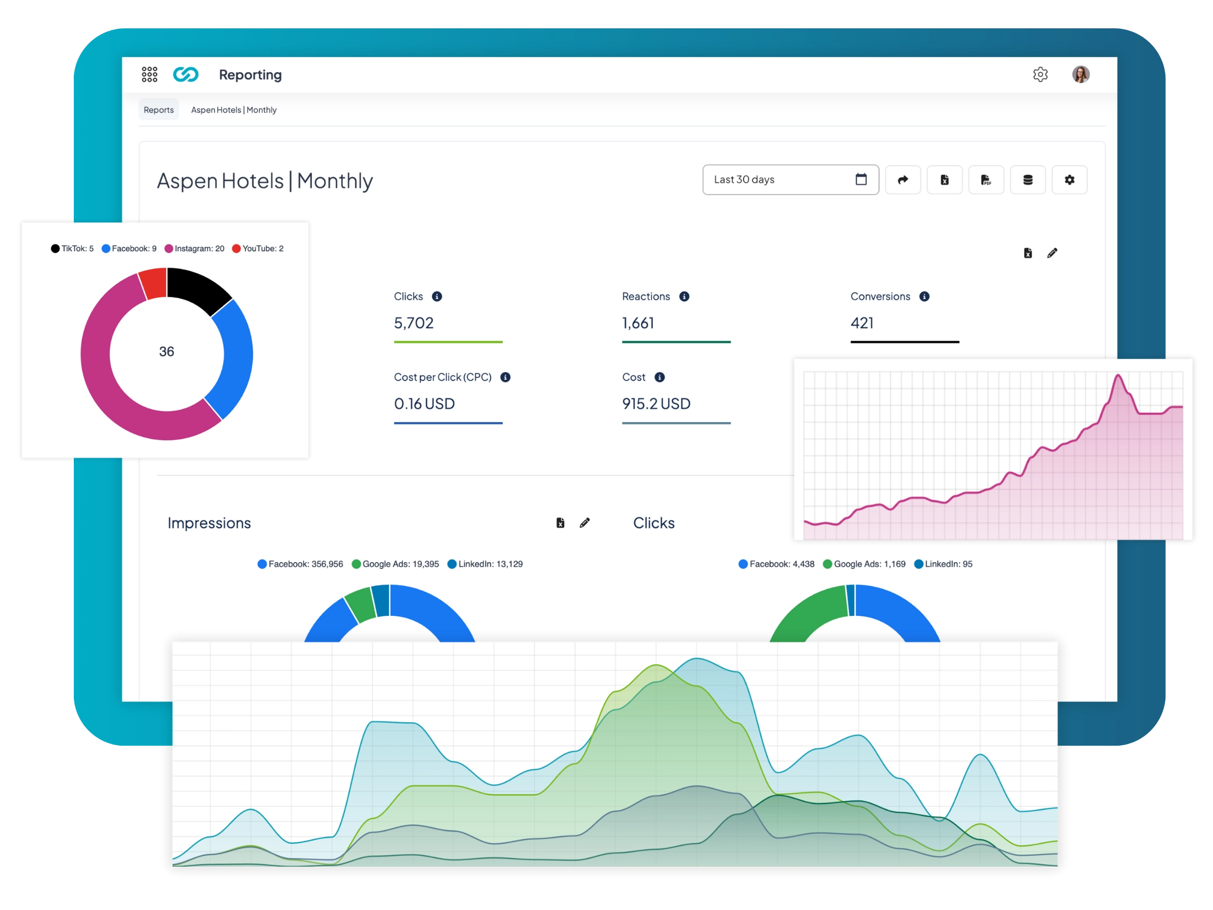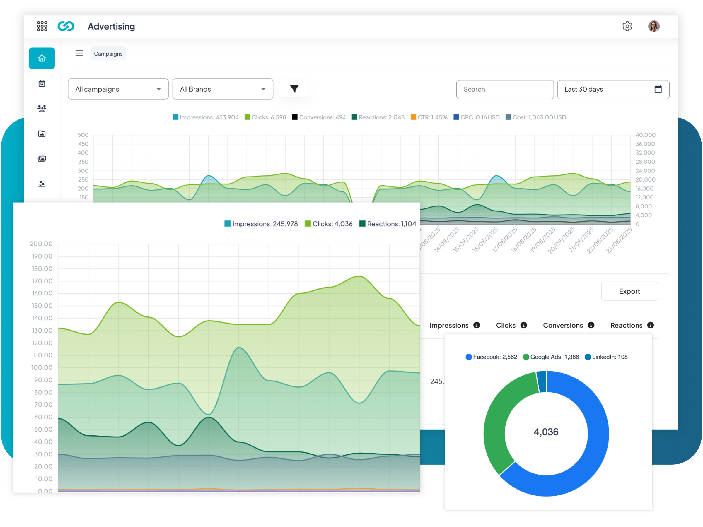 Get an overview of important campaign key metrics for all channels and departments in no time. Integrated advertising and tracking networks: