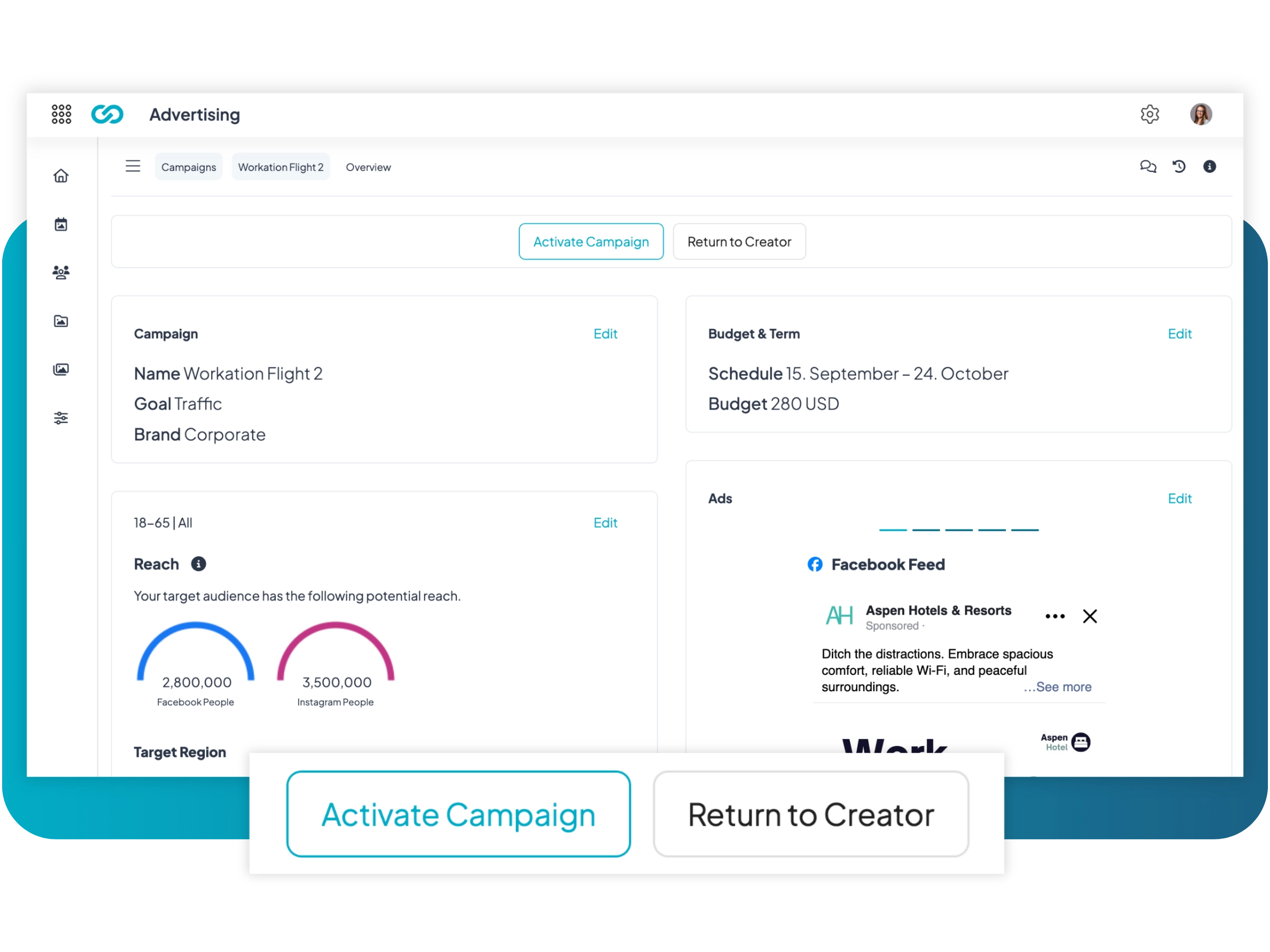 Use the professional know-how in your university departments to prepare suitable target audiences and ads in campaigns for degree programs or further education.